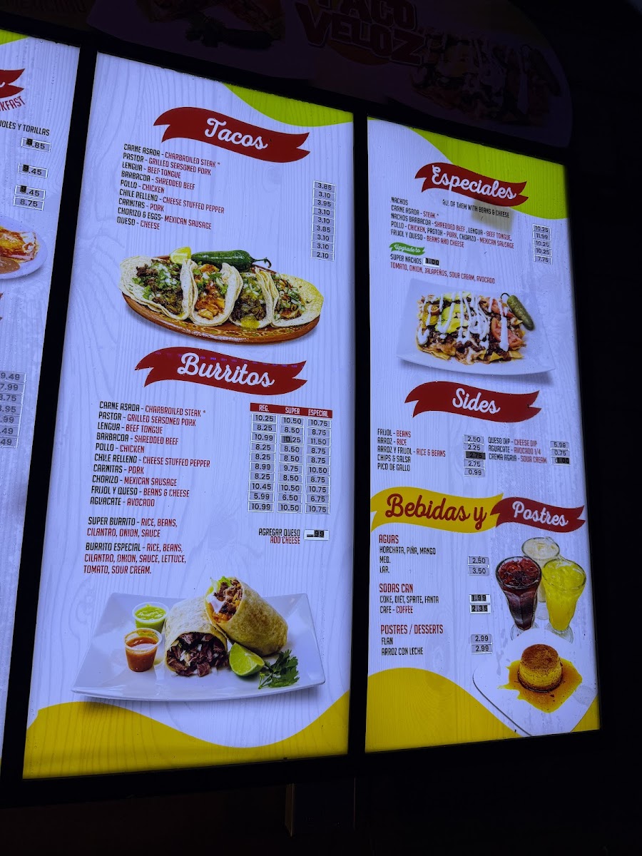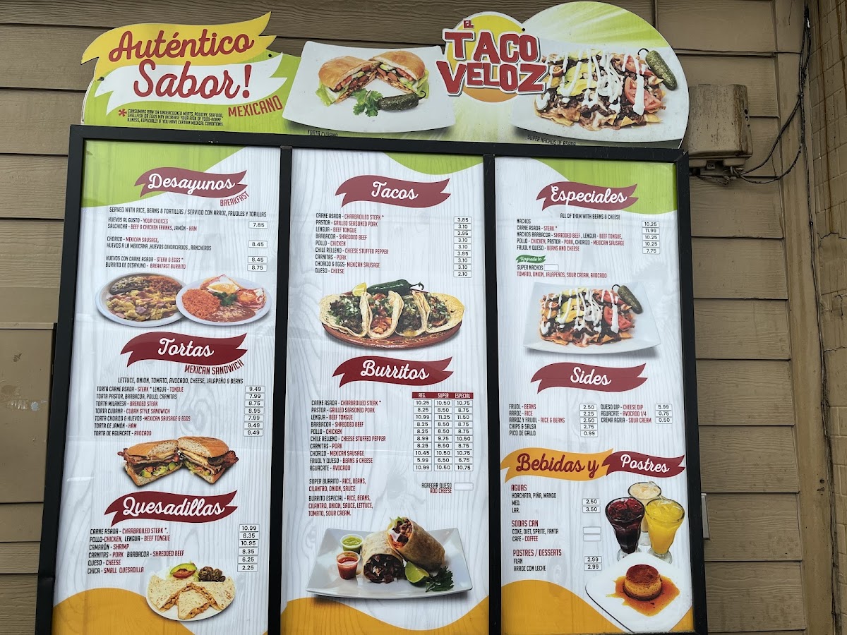 El Taco Veloz Menu